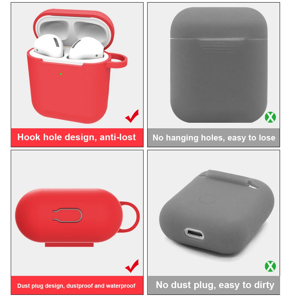 Silicone Case Anti-lost Rope Strip Storage Cover For Apple Airpods 2 Shockproof Cases Pouch For Airpods 2 Earphone Accessories