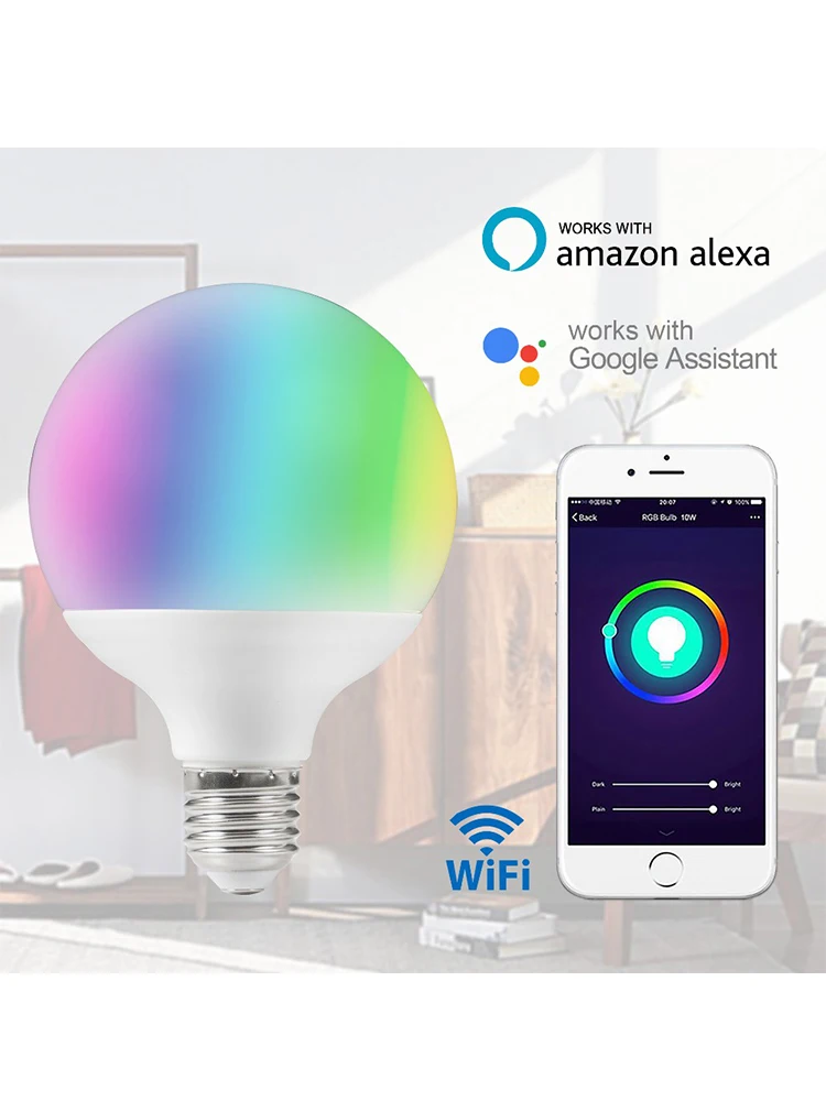2pcs E27 G95 Globe Bulb Dimmable Wifi Smart Led Light Warm White RGBCW Voice Control by Alexa Echo Google Colorful Lamp for Home