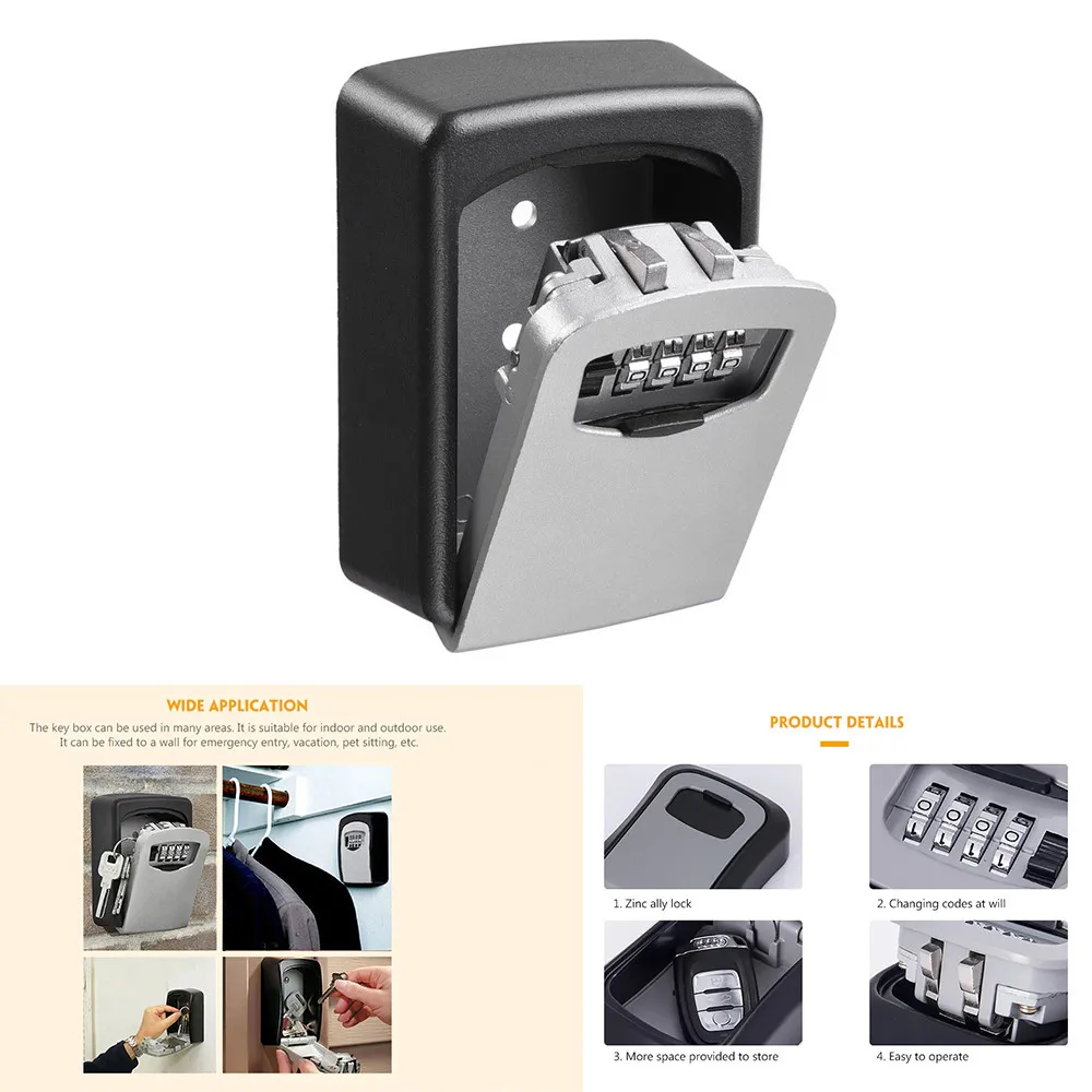 Safe 4 Digit Combination Key Lock Box Wall Mount Security Storage Case Organizer