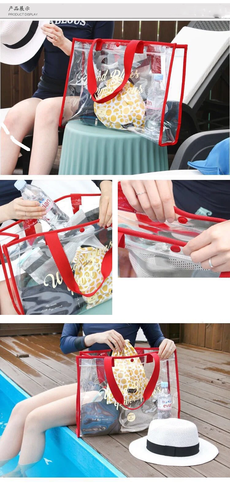 4styles Transparent PVC Travel Beach Bag Fashion Women Shopping Storage Summer Swim bag Clear Shoulder tote