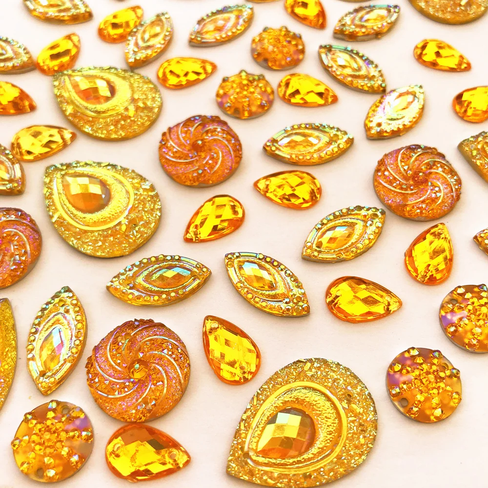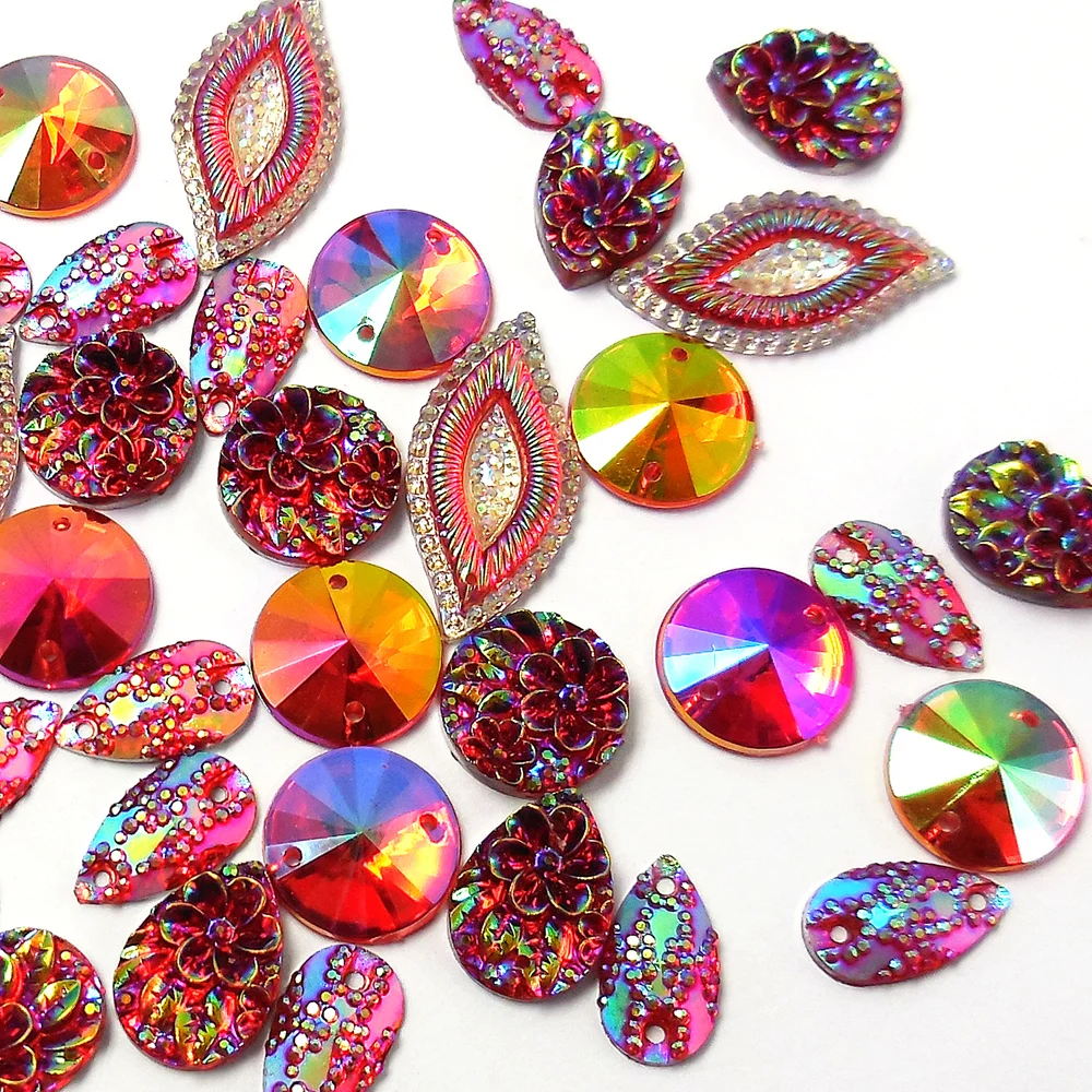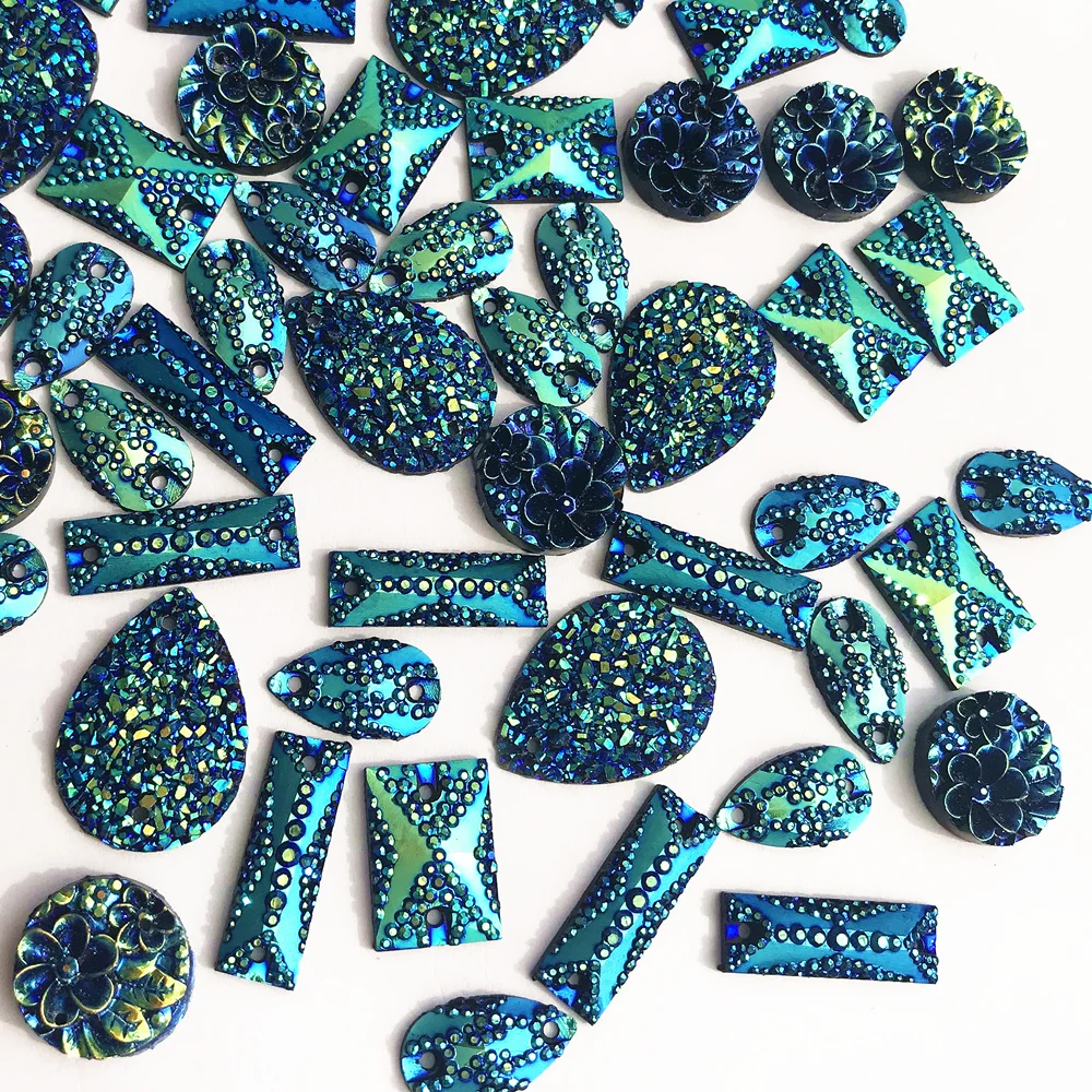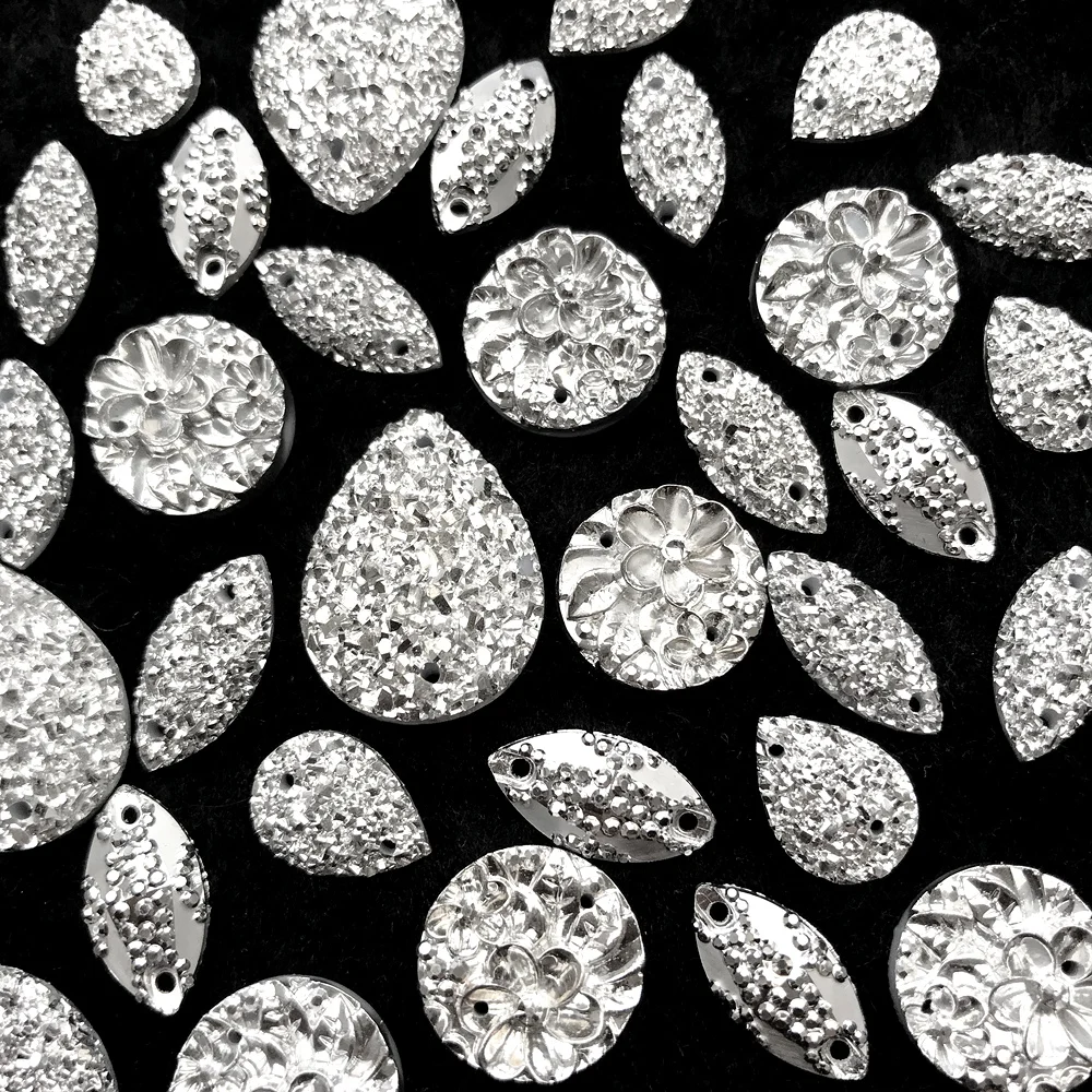 description: They are gogeous,with 2 holes on either side to stitch on,with good shine and sparkle..Their brightness looks stunning and dazzling stitch onto fabric.Flat back.
