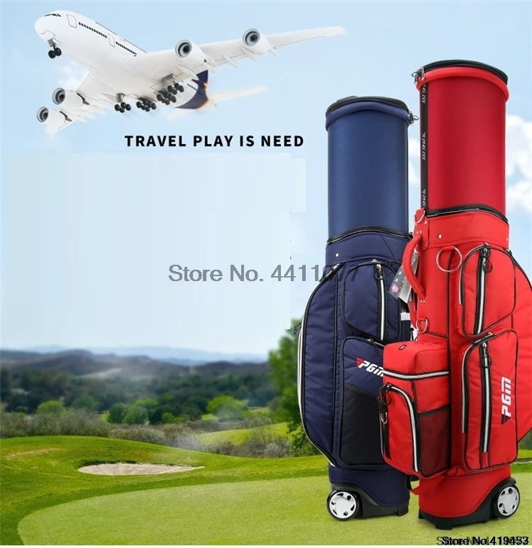 Authentic Pgm Multifunctional Golf Standard Ball Bag Capacity Cover Cart Caddy Viation Bag With Wheels Golf Club Bag D0088