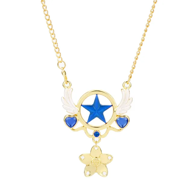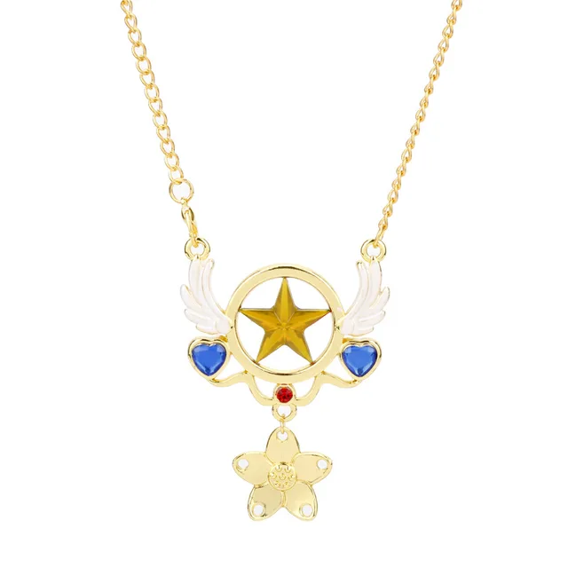 Anime Cartoon Card Captor Necklace Clear Card Sakura Kinomoto Sakura with Magic Wand Necklace Pendants Accessories Figure Toys