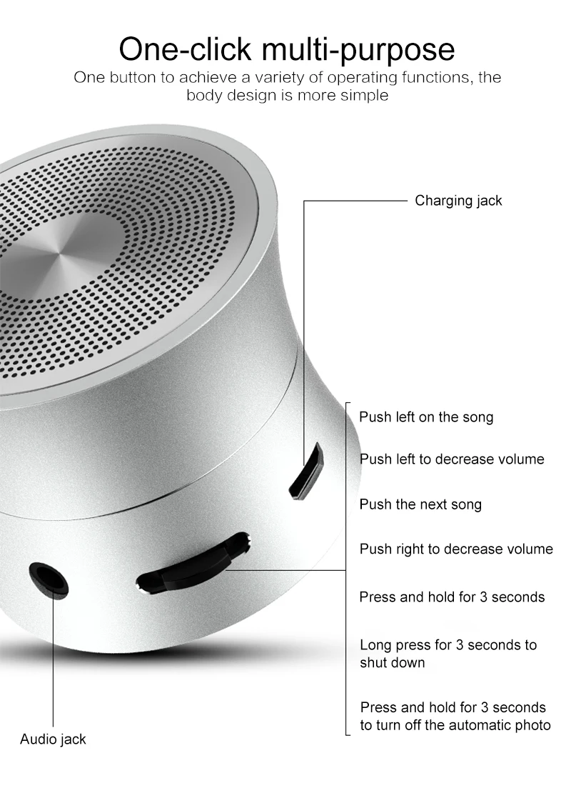 Booming Bass: Bass radiator is fixed on the bottom of mini speaker, you can feel surprisingly stong bass with air pressure system's help, you'll like heavy bass bring a sense of the kind of release.