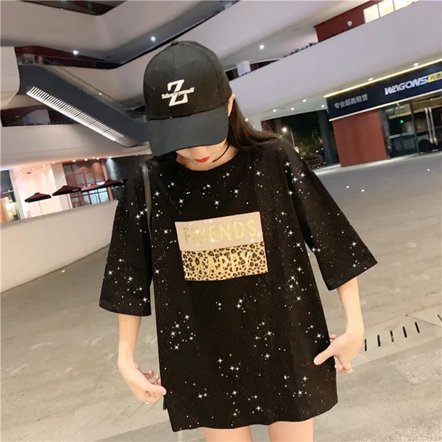 IMAGE Letter Priting Summer Women s New Large Size Casual Harajuku Short Sleeve T-Shirt Funny Star T-Shirt