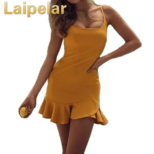 Trendy Women dress off shoulder solid strap Bodycon Bandage Sleeveless Evening Polyester Mini Dresses one pieces