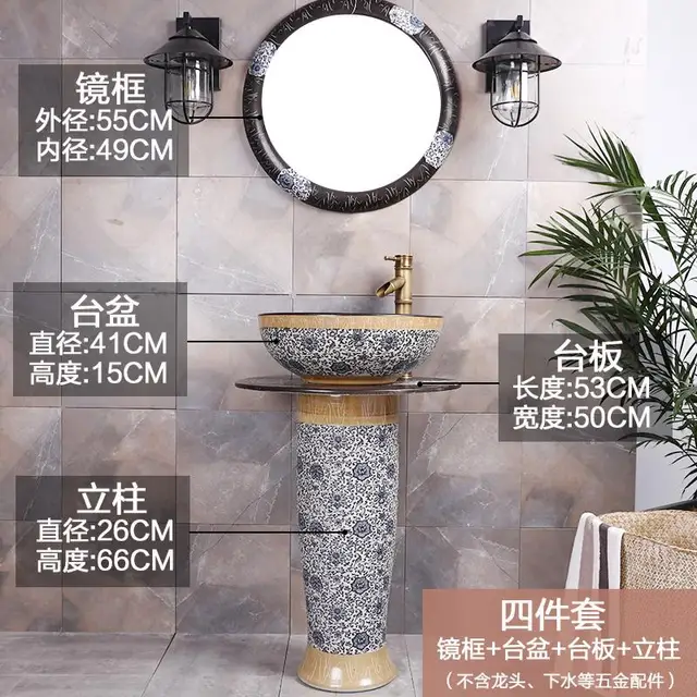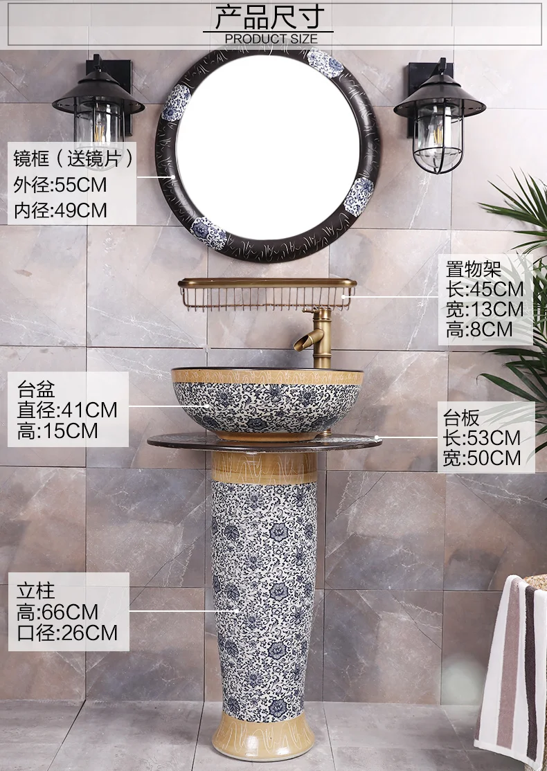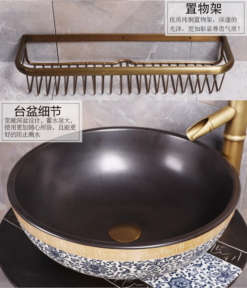 Basin Faucets Brass Antique Wash Basin Cold And Hot Water Tap Single Hole Retro Blue And White Porcelain Bathroom Sink Faucets