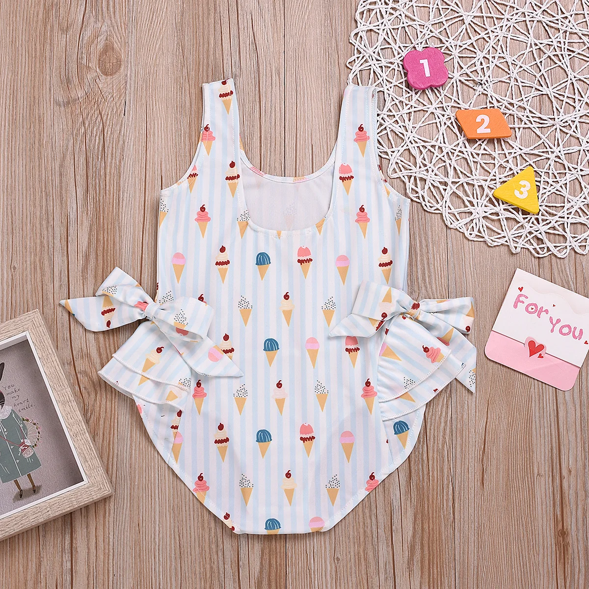 This monikini is fully printed with ice cream pattern and decorated with two bowknot at waist