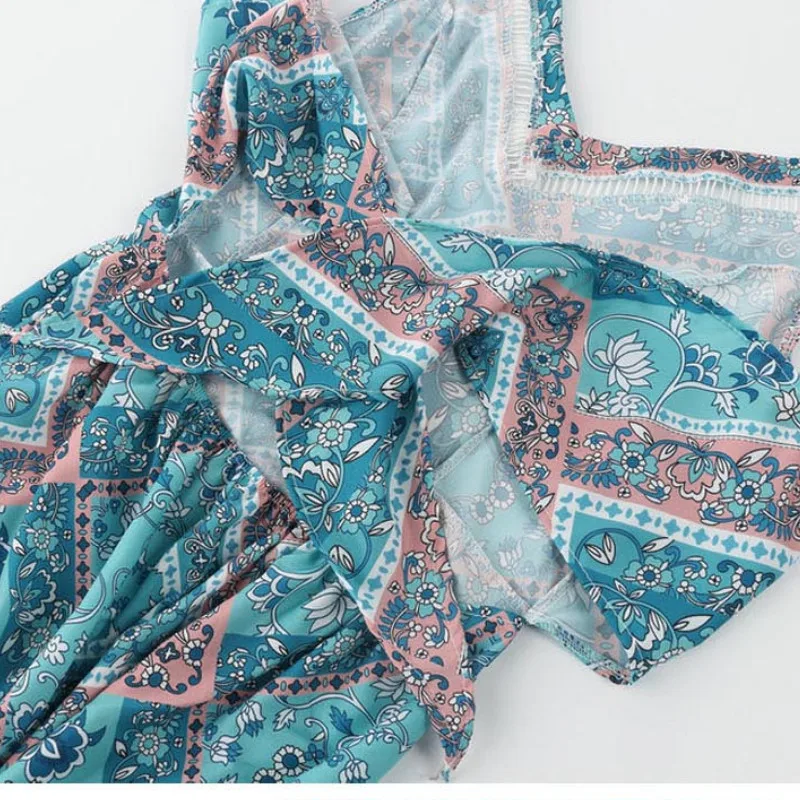 Women Printed Floral Ramie V neck Dress Ladies Retro Vintage Ramie Dresses Female Spring Summer Dress 2019