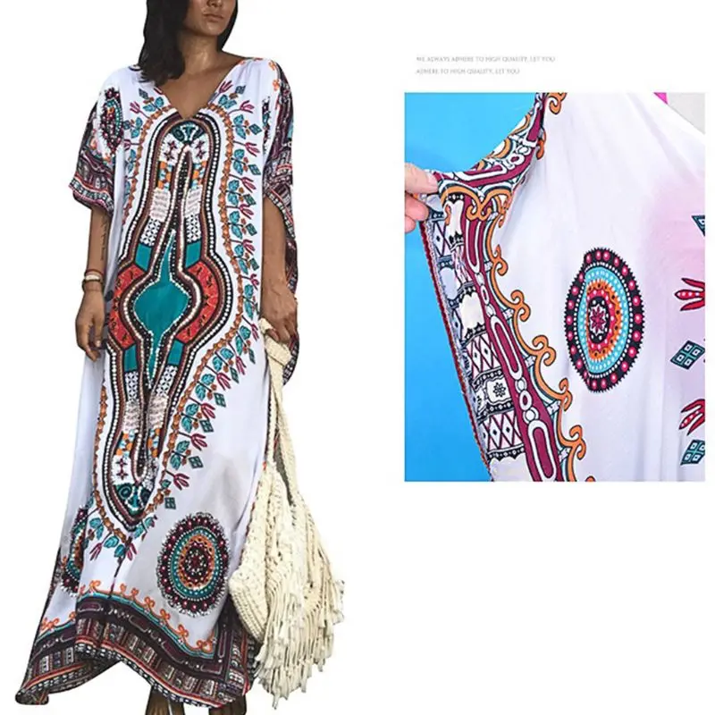 3/4 batwing sleeves, sexy deep V-neck, casual pullover style, oversized loose fit, maxi ankle length.